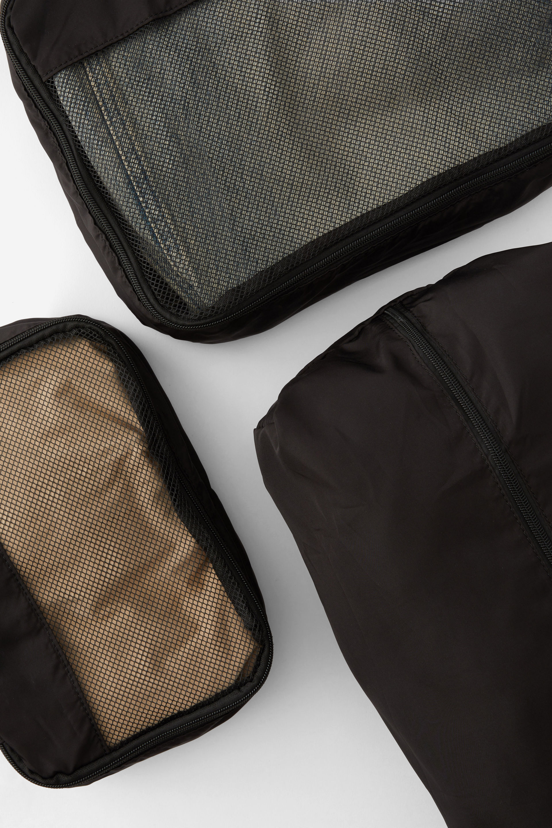 This set comes with three zippered cells that fit neatly into one compact pouch- perfect for keeping your clothes, tech, and toiletries organised and ready for takeoff.