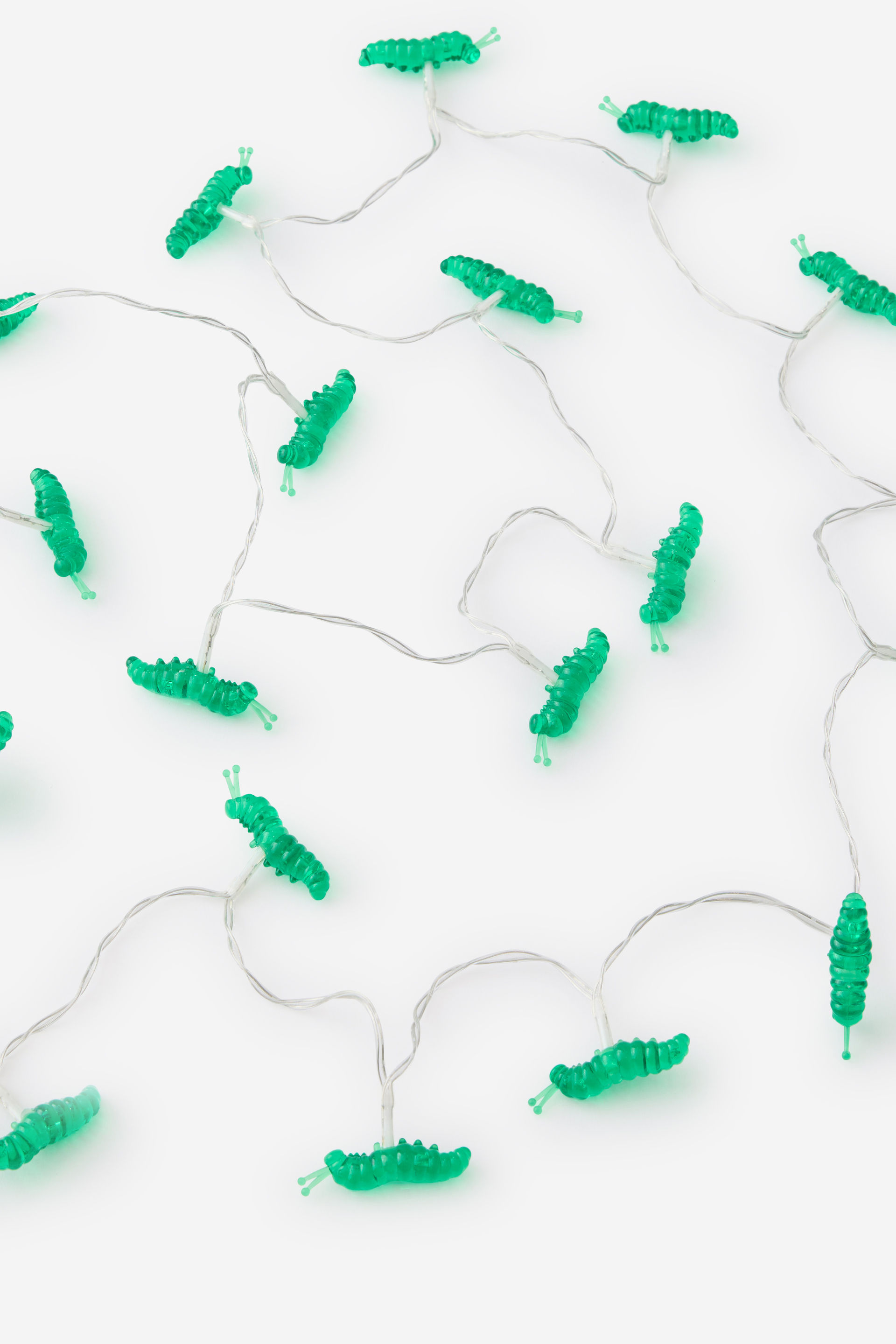 - -20 LED caterpillars -Total length: 2.2m (190cm string lights + 30cm lead wire) -Requires 2 x AA batteries (not included)