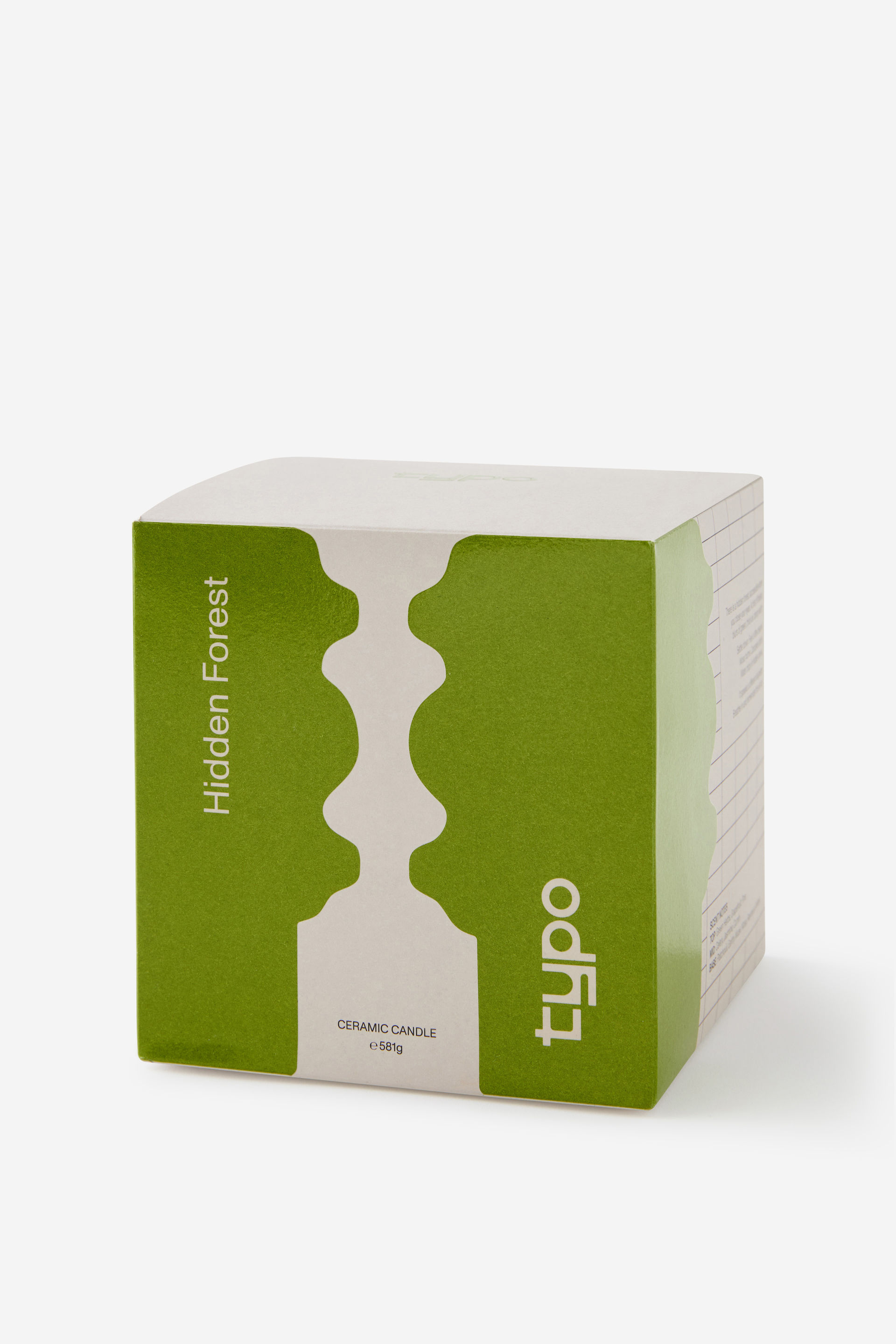 Candle in ceramic vessel Soy wax blend Unique Typo fragrance Burn time 50 hours 581g SCENT NOTES Top: Green Herbs, Grapefruit, Pine Mid: Celery, Jasmine, Cumin Base: Patchouli, Earthy Musk, Moss, Resinous Amber